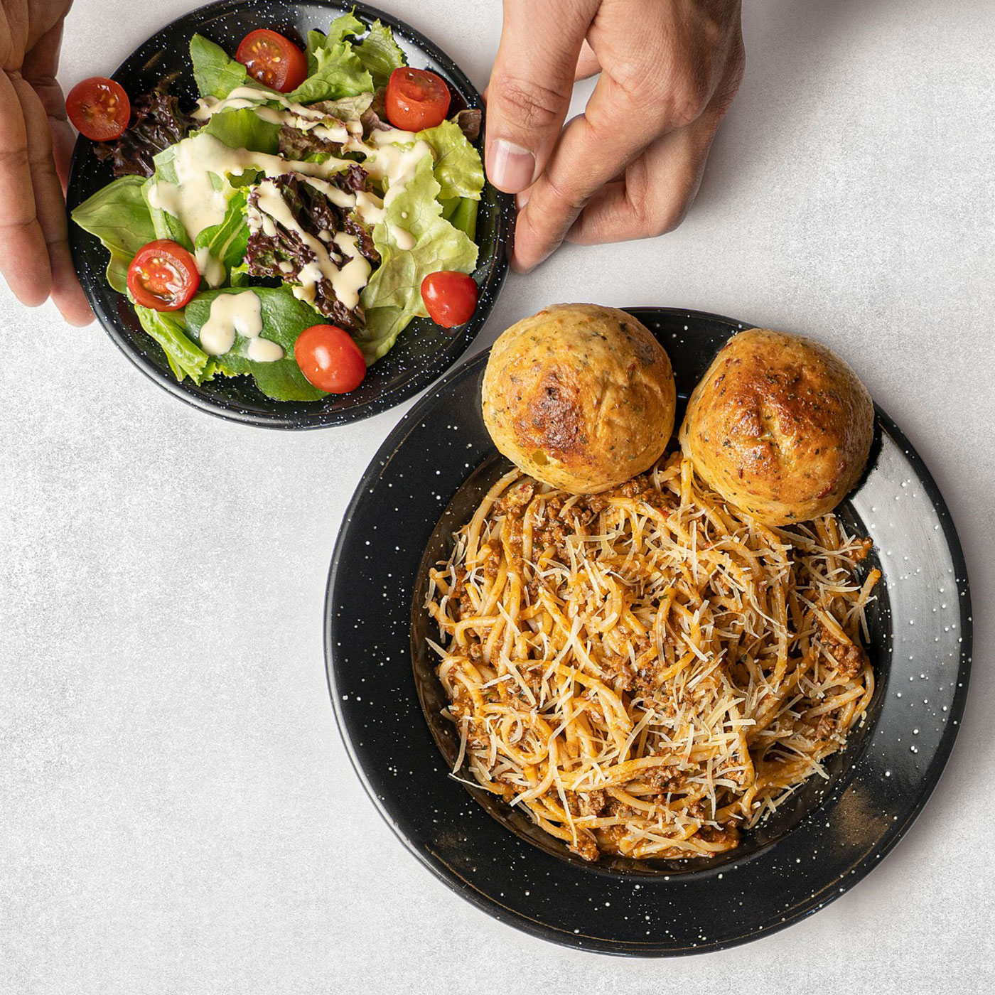 ACOMPAÑADAS DE PANES DE AJO Y ENSALADA
